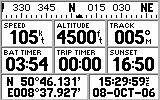 | Position Page | Speed, Altitude, Track, Bat Timer, Trip Timer, Sunset | ![]() |